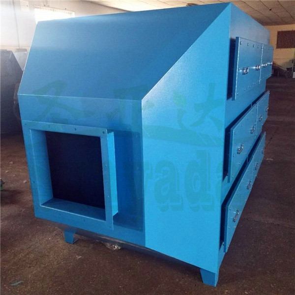 3、光催化氧化净化装置。由于活性炭具有能够再生的特点,在活性炭用量大、废气浓度高及活性炭吸附饱和时间短的情况下,可使用活性炭脱附装置对活性炭进行再生循环使用(脱附介质可使用蒸汽)。使用活性炭脱附装置不但可以节约运行成本,而且能够对吸附的废气进行回收,同时避免了二次污染。