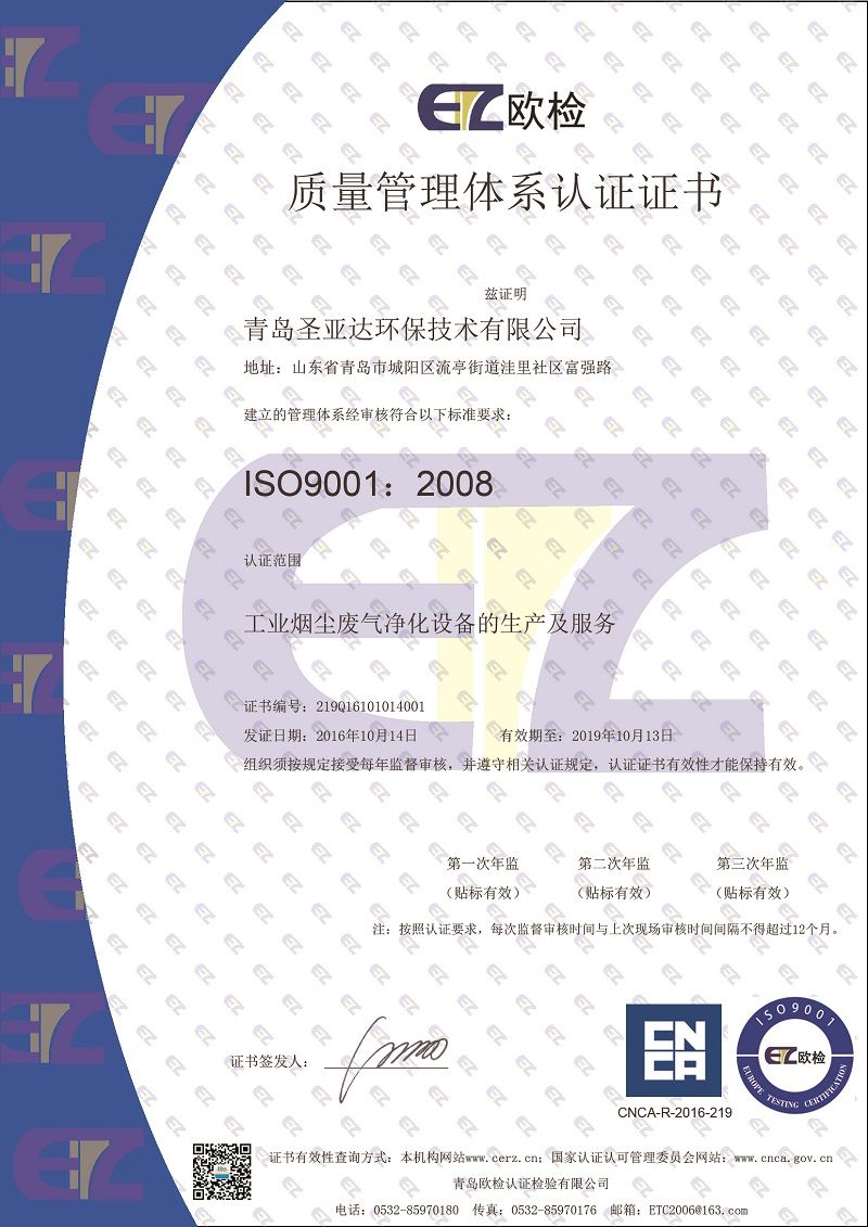 10月8日-10日,ISO9000质量管理体系认证专家组莅临我公司,进行为期三天的ISO9000质量管理体系现场评审认证年审工作,现已正式取得ISO9001质量管理体系认证证书。