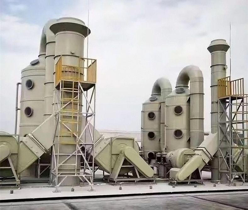 喷淋塔是一种新型的气体净化处理设备,是用来处理废气中的有害成分,清洁废气用的设备,又名洗涤塔、水洗塔。废气由风管引入净化塔,经过填料层,废气与喷淋吸收液进行气液两相充分接触发生吸收中和反应,酸雾废气经过净化后,在经除雾板脱水除雾后由风机排入大气。吸收液在塔底经水泵增压后,通过设置与塔内部的喷淋管道和喷淋头,从塔上部喷淋而下回流至塔底循环使用。净化后的废气通过塔顶出口管道达到地方排放标准的要求,达到排放。喷淋塔通常处理酸雾废气比较多,因而又称之为酸雾废气塔。