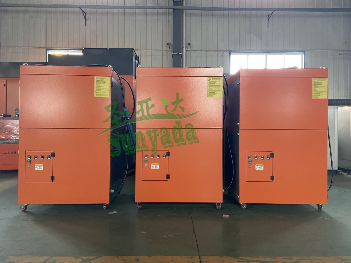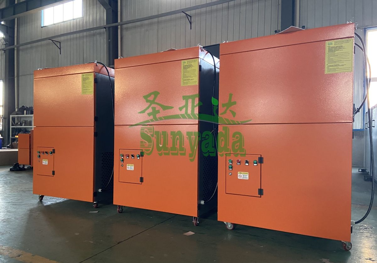 江苏某工程公司在圣亚达定制的三台5000风量自动清灰款焊烟净化器现已生产完毕,准备发货。该公司成立于2016年,是一家从事钢板仓工程施工,制造销售,安装销售等业务的公司,为处理车间镀锌板焊 接烟尘的问题,客户与我们沟通需要几台风量较大的焊烟净化器,根据客户的要求及车间情况,前期我们为客户定制了一台SYD-HJZ5000S双臂自动清灰款焊 接烟尘净化器,投入使用后,客户表示对该设备净化烟尘的效果非常满意,并且滤芯自动清灰功能省时省力,维护方便,现又重新回购三台。以下为此次生产设备的实物照片: