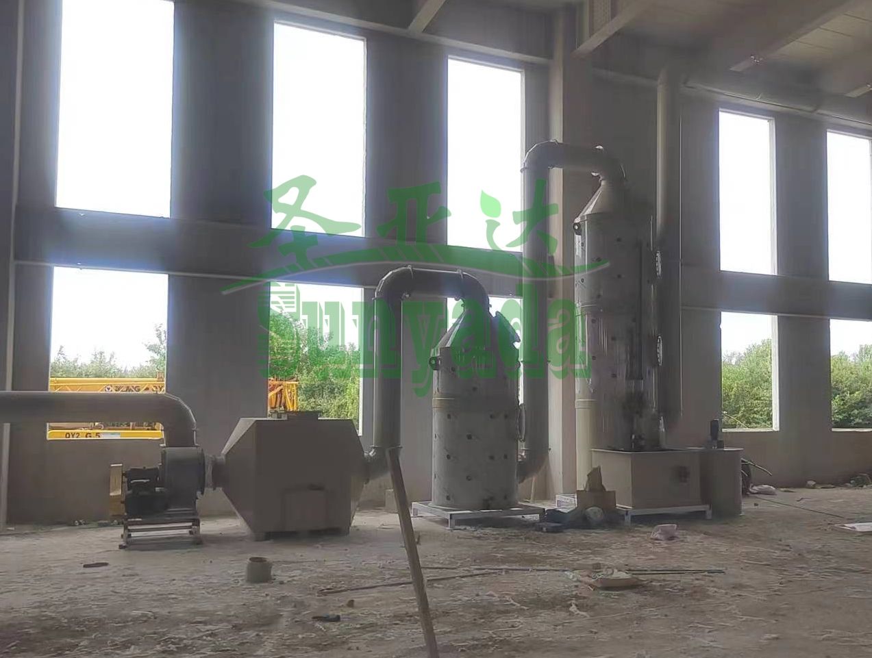 设备结构:常规喷淋塔结构概括为:一层除雾、两层喷淋、三层填料、四个视窗、五个活接球阀。